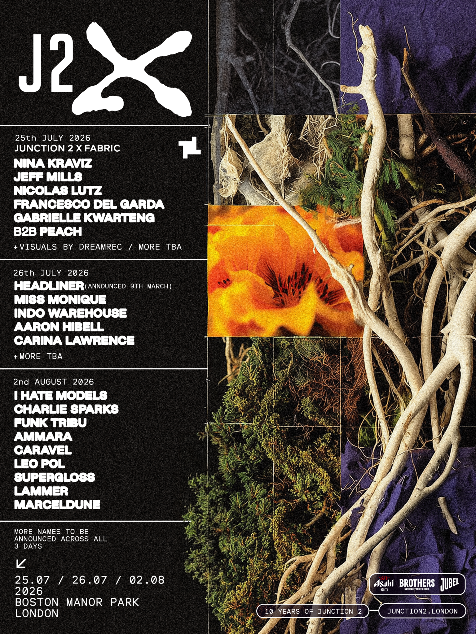 Junction 2 will also be at the heart of The Bridge, a new series of six electronic music events set within Boston Manor Park across two weekends: 24th–26th July and 31st July–2nd August 2026. The Bridge will present a broad programme of artists and promoters across two iconic stages. Already announced is Hedex presents: My Home Is The Rave. Follow @l_w_e for further updates.